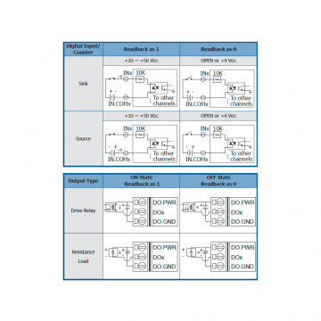 Each input can be used as a 32-bit counter and each output can drive 300 mA load. The power-on value and safe value of digital output are programmable. It can safely be used in applications where hazardous voltages are present.